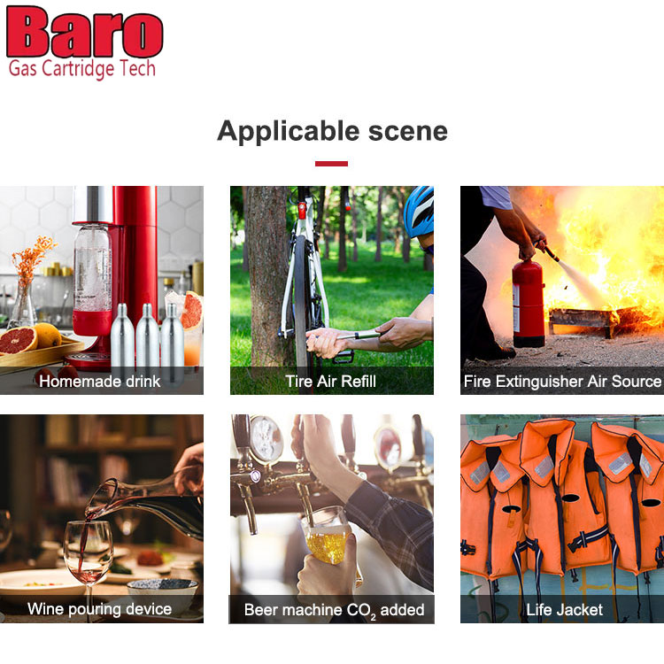 Iga silinder sisaldab 74 g süsihappegaasi, millest piisab 14 või enama tünni edasilükkamiseks ja mahutamiseks. Värskuse omaduste säilitamiseks keevitatakse igale balloonile joogikvaliteediga õlletehase heakskiidetud süsinikdioksiid. Usaldusväärne ja turvaline. See võimaldab tarbijatel nautida liikuvust ja kasutusmugavust. Kasutage ökonoomseid masstoodetud CO2 padruneid. Uus õlle- või soodameetod, milles kasutatakse propellendina süsinikdioksiidi. Mõõdud: pikkus 140 mm, läbimõõt 40 mm. Kaal 286 grammi.
