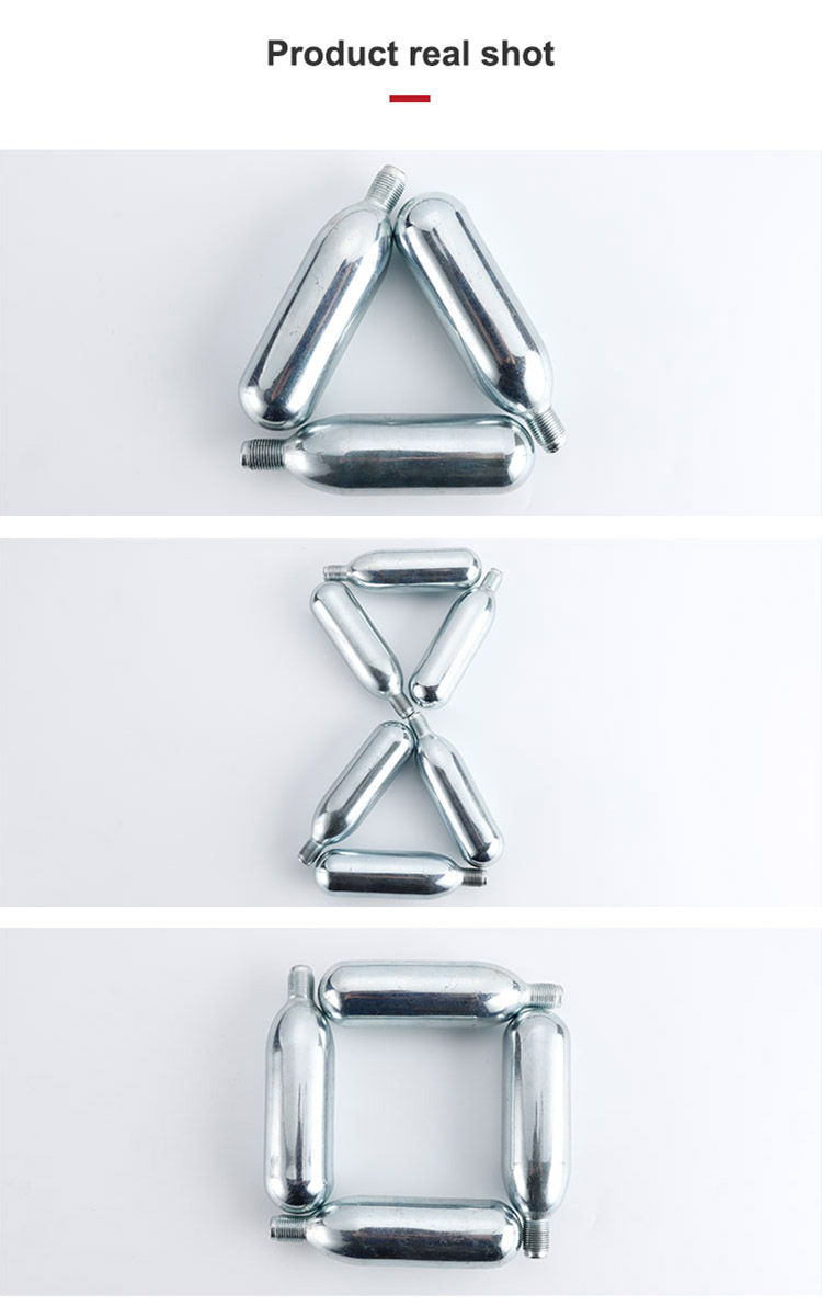 74g CO2 kassette kasutatakse kõigis joogiseadmetes, mis nõuavad 5/8"-18 keermega kassette. Need 74g CO2 ühekordselt täidetavad kassetid on mõeldud jookide säilitamiseks, gaseerimiseks ja väljastamiseks. Tühje tindikassette tuleks hoida koos majapidamises kasutatavate taaskasutatavate esemetega, nagu supp ja jook purgid on valmistatud pehmest terasest ja on loodud vastama nõudlikele vajadustele Joogitööstus Keevitame need kinnised perforeeritud korgid. See tähendab, et paljude aastate säilivusaeg ei leki. Midagi ei lähe sisse, midagi ei lähe välja, välja arvatud juhul, kui keerate seda meie augustamise regulaatori külge.